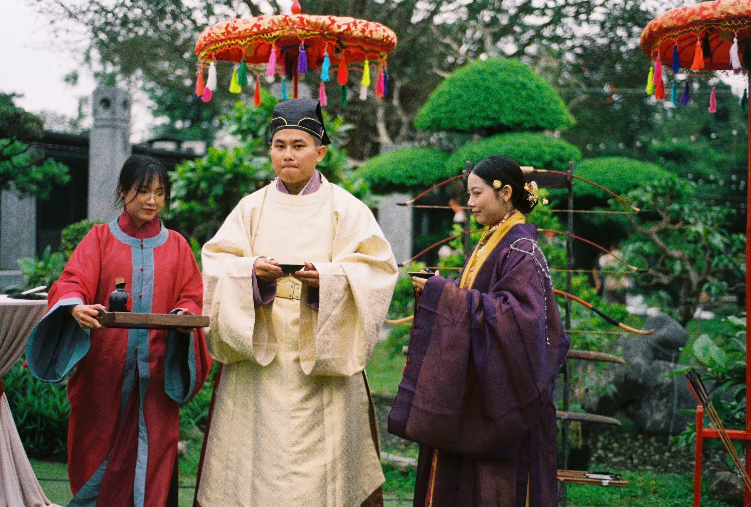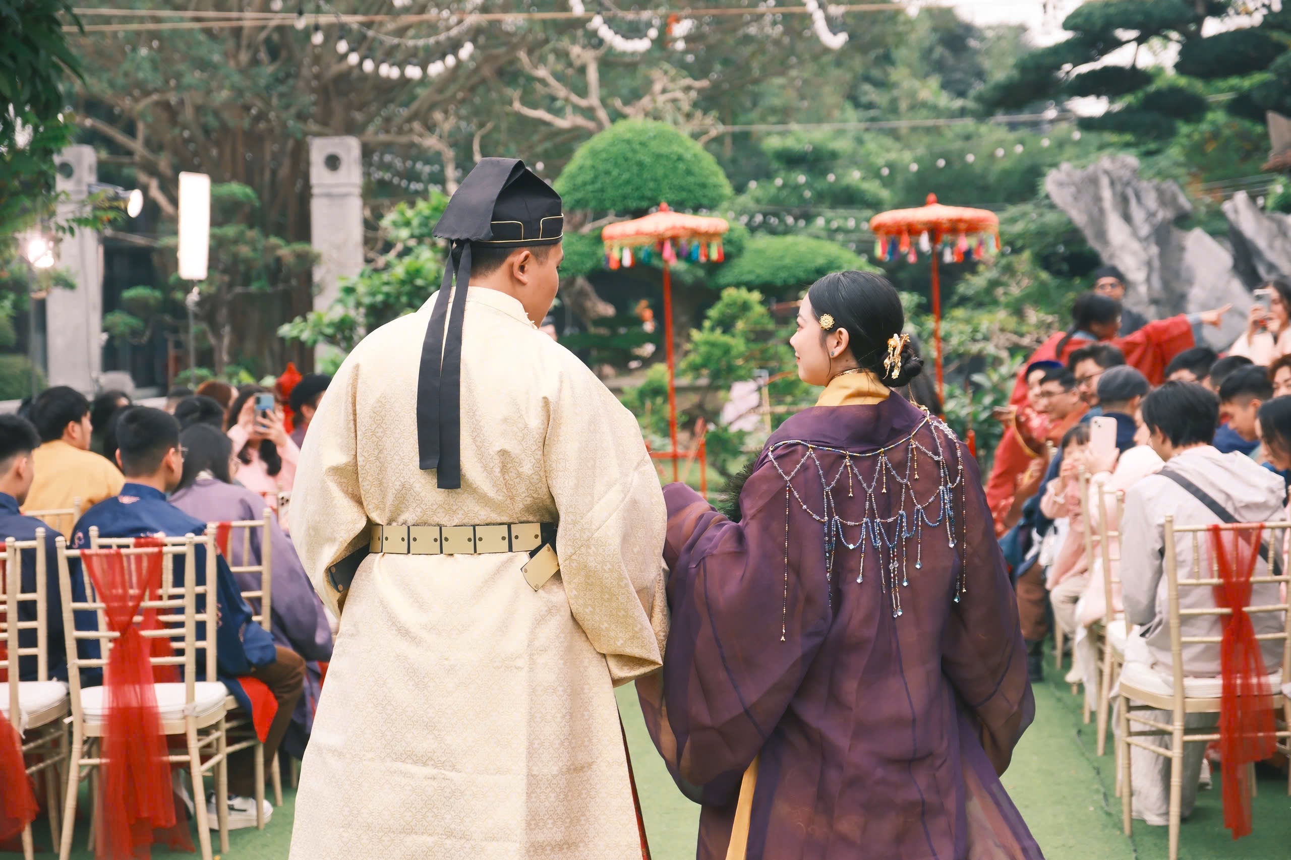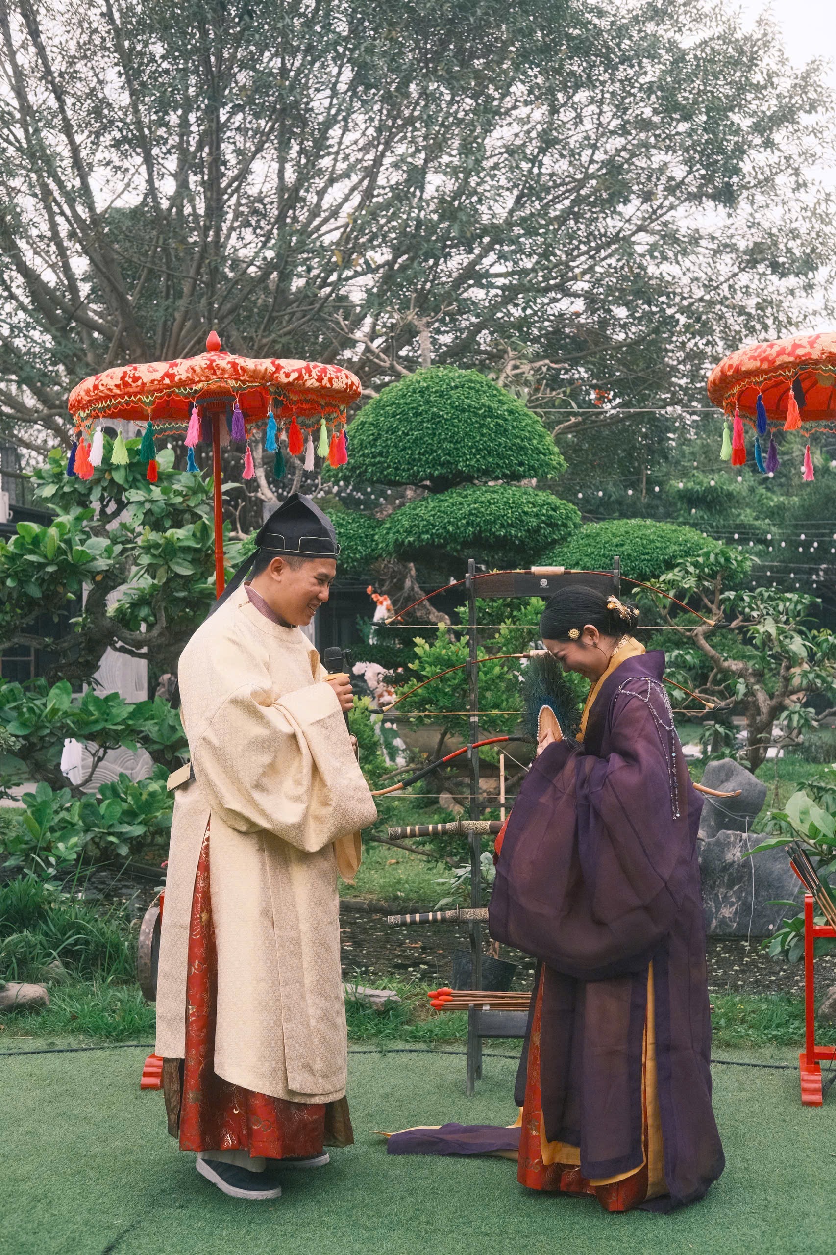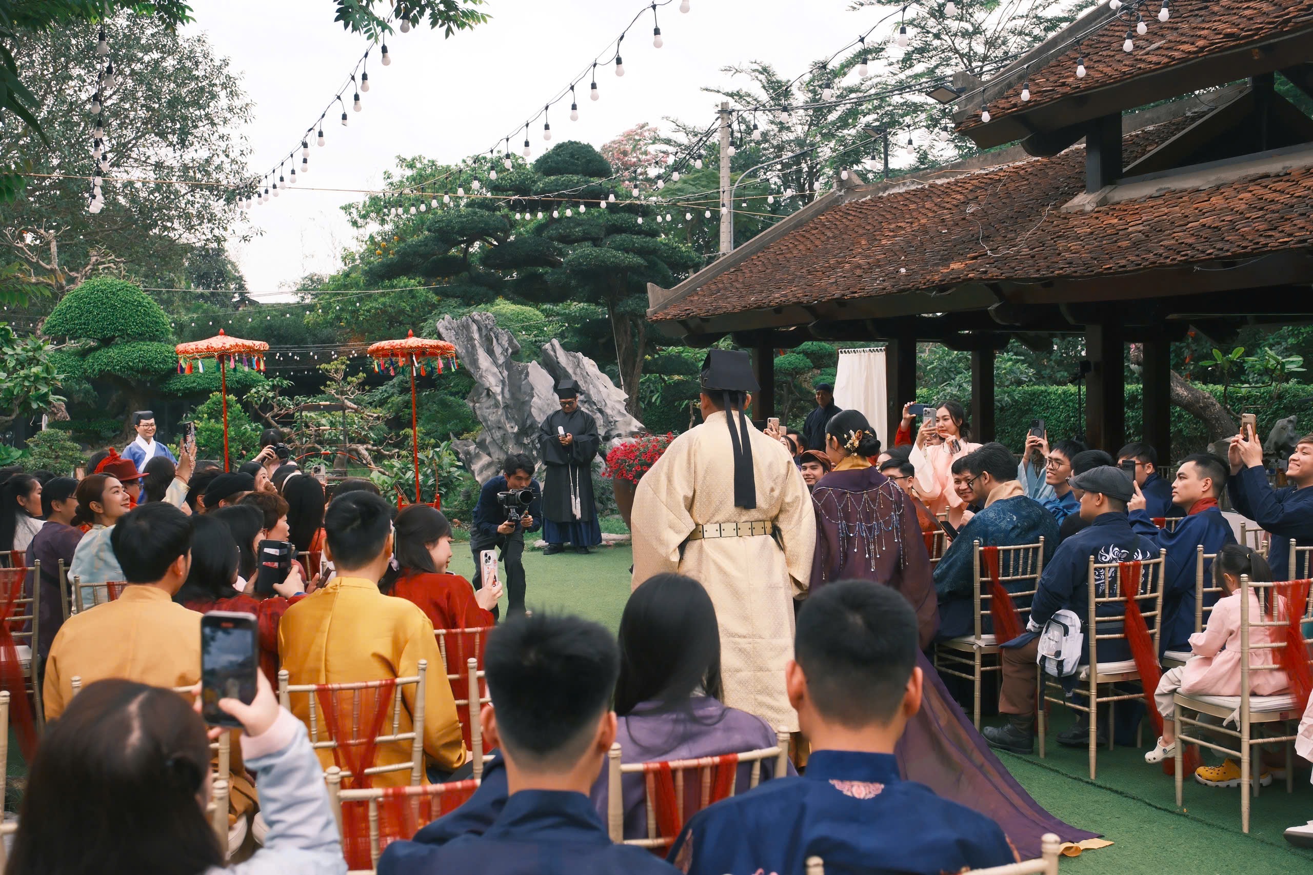 Buổi tiệc Báo Hỷ được diễn ra trong một ngày mùa xuân ấm áp, hoa thơm bướm lượn. Với nhiều cảm hứng từ văn hóa truyền thống, buổi tiệc này có các nghi thức như Lễ kết tóc – Lễ Hợp cẩn giao bôi – Trao lời nguyện ước và Xạ lễ. Cô dâu – chú rể cùng các quan khách xúng xính trong những bộ cổ phục Việt, rất thân thương và hạnh phúc.