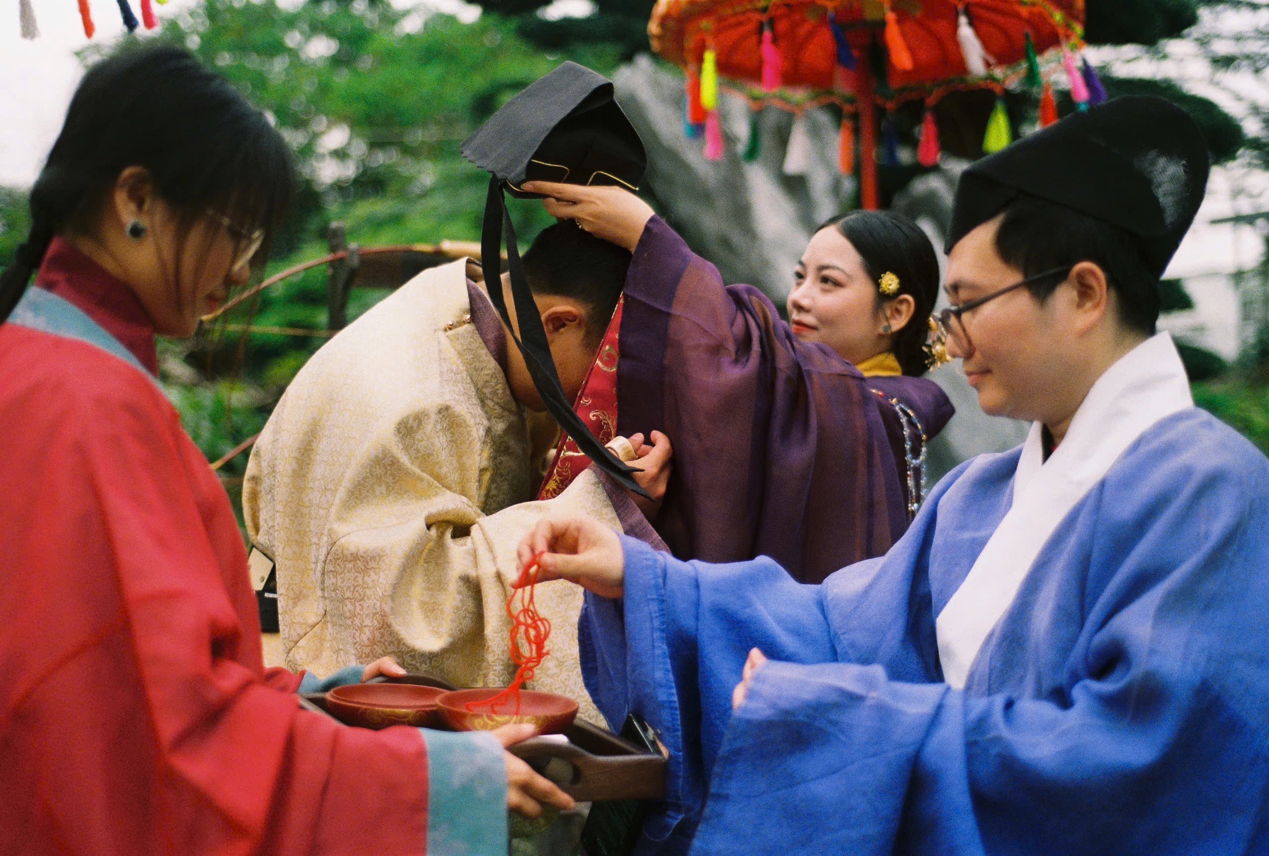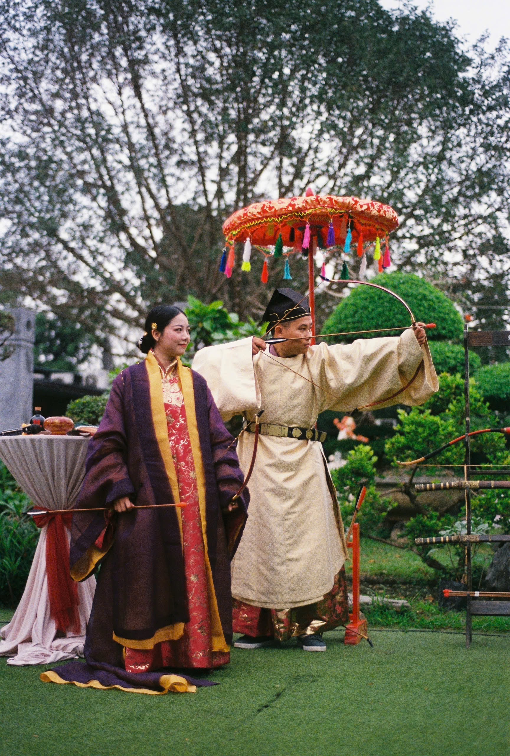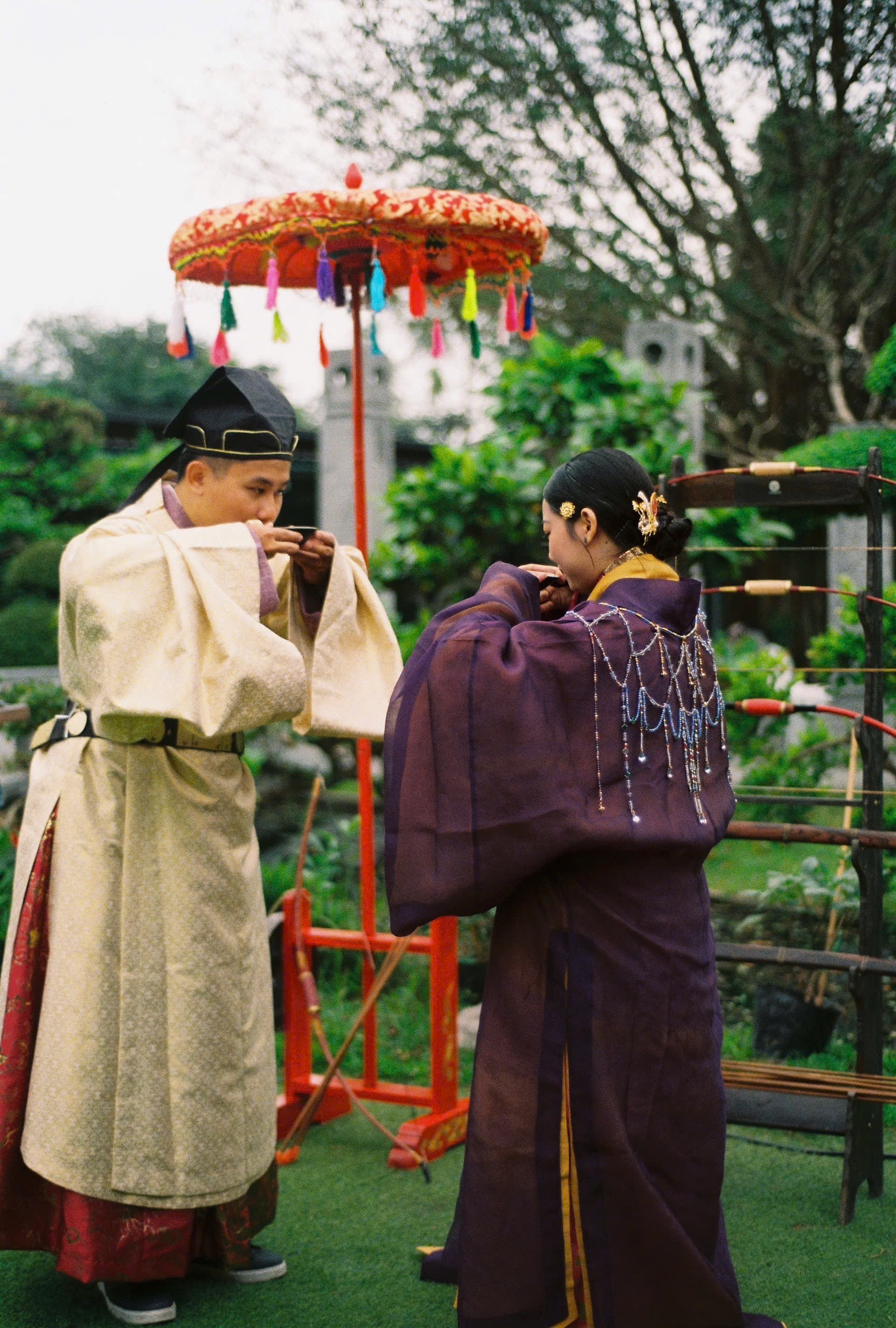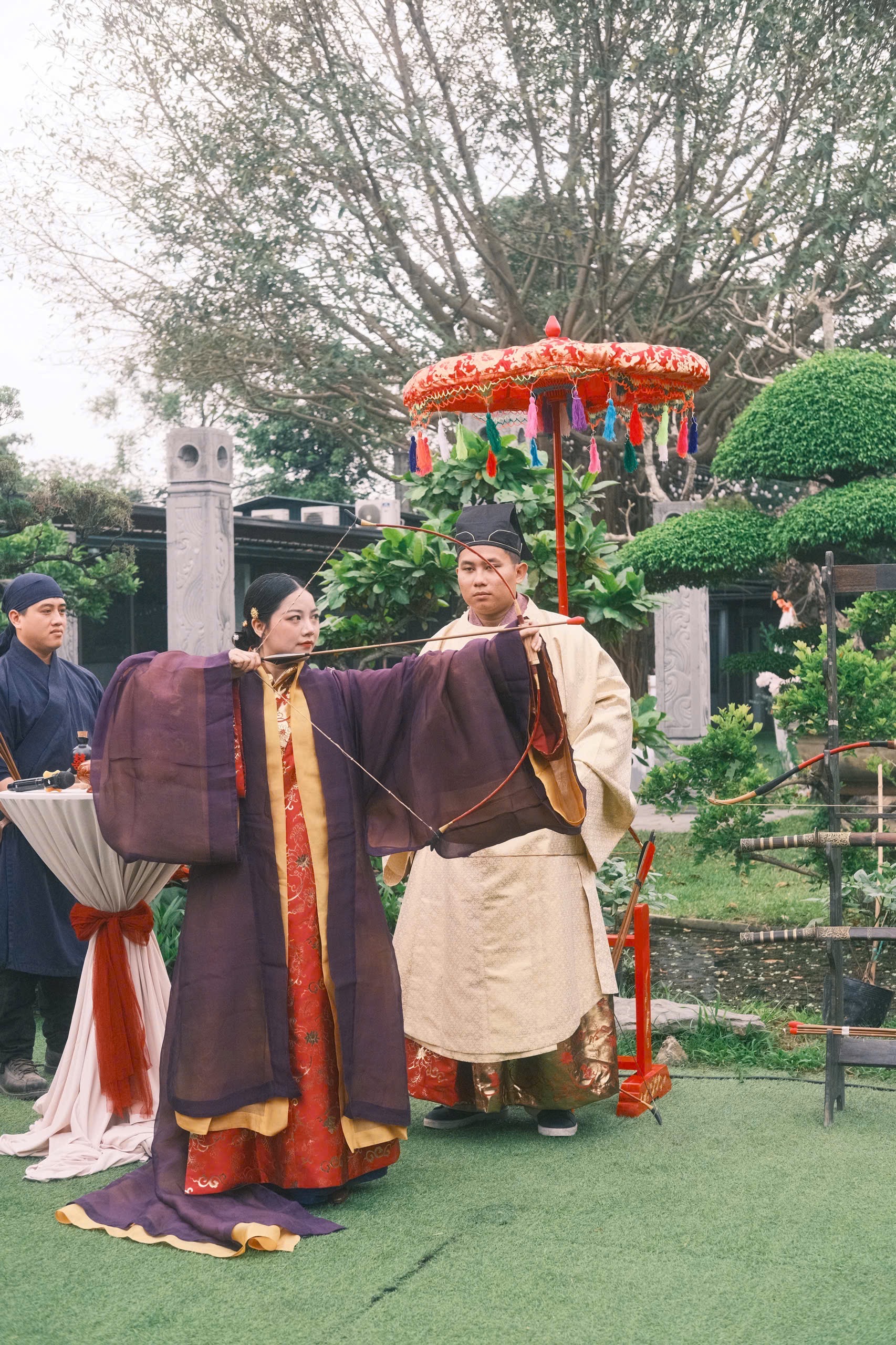 Buổi tiệc Báo Hỷ được diễn ra trong một ngày mùa xuân ấm áp, hoa thơm bướm lượn. Với nhiều cảm hứng từ văn hóa truyền thống, buổi tiệc này có các nghi thức như Lễ kết tóc – Lễ Hợp cẩn giao bôi – Trao lời nguyện ước và Xạ lễ. Cô dâu – chú rể cùng các quan khách xúng xính trong những bộ cổ phục Việt, rất thân thương và hạnh phúc.