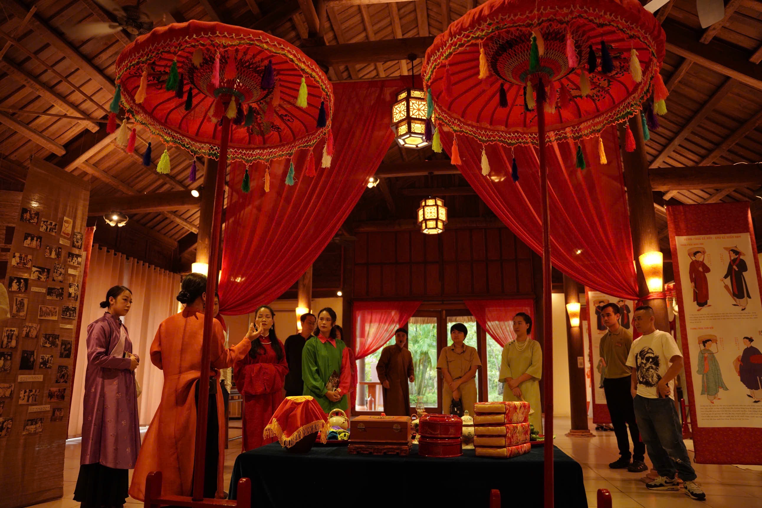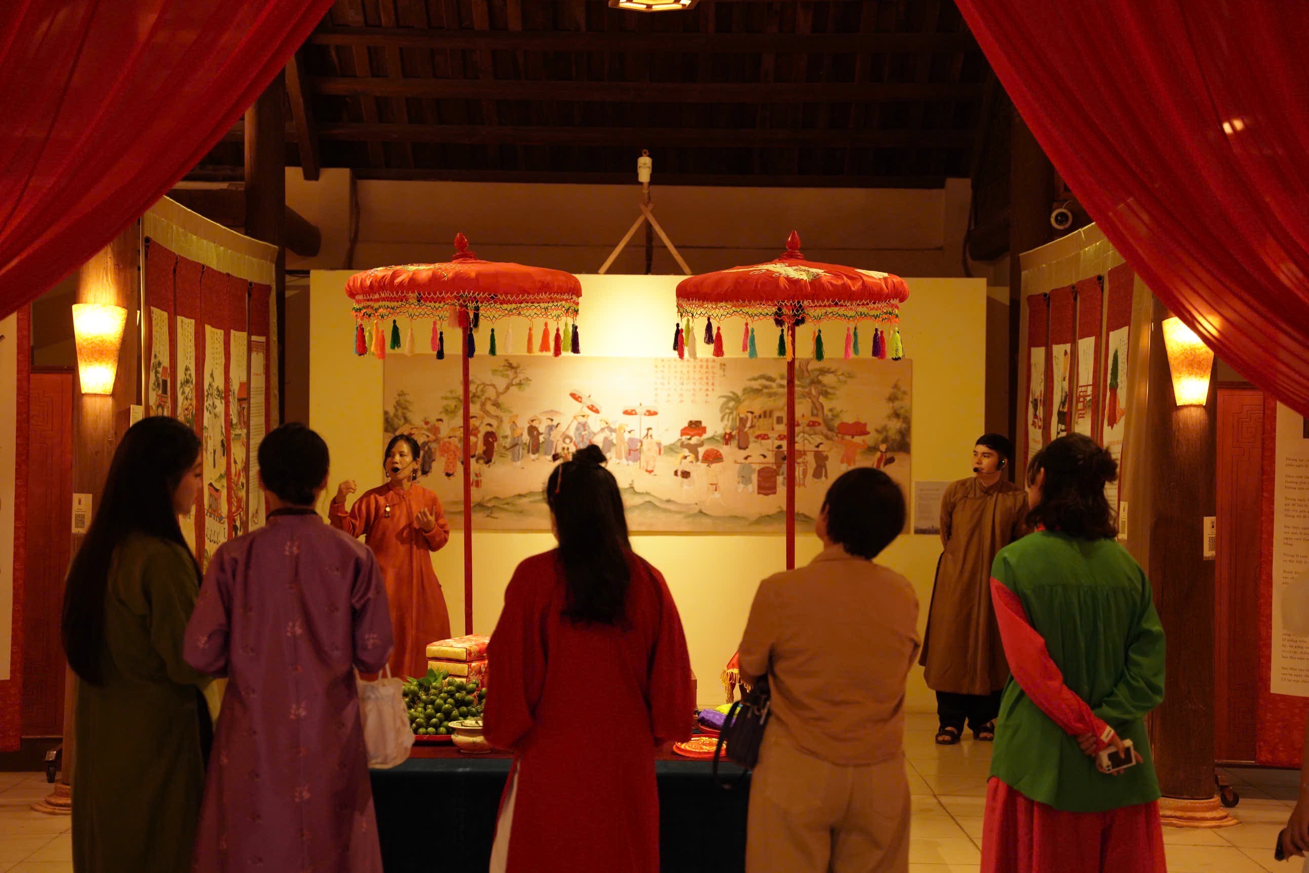 Cùng với đó là loạt tranh minh hoạ về các nhân vật đặc trưng trong đám cưới thời Nguyễn.