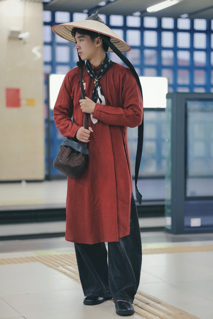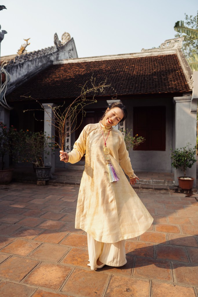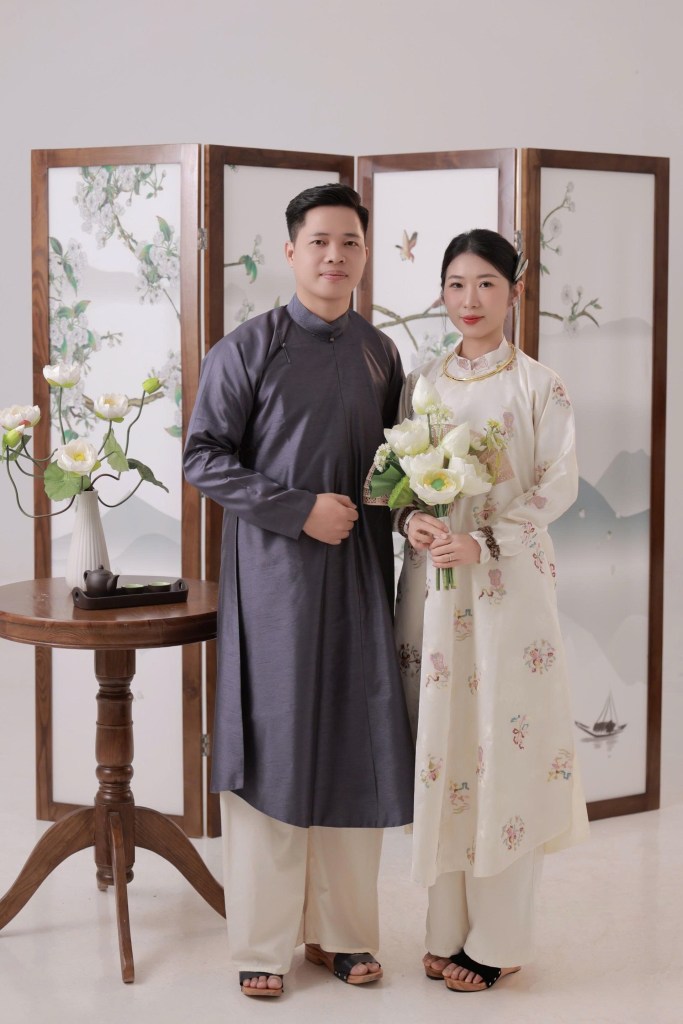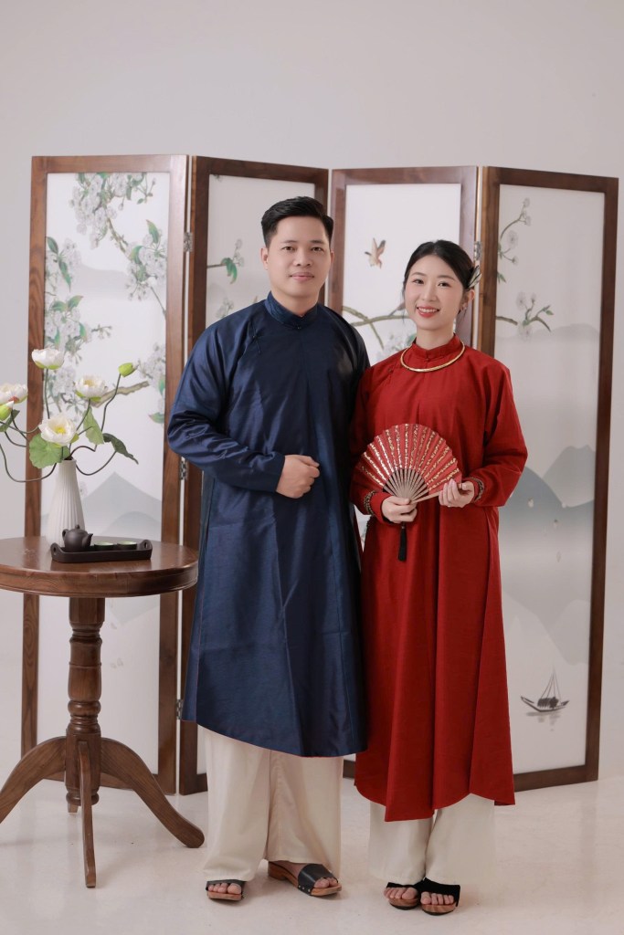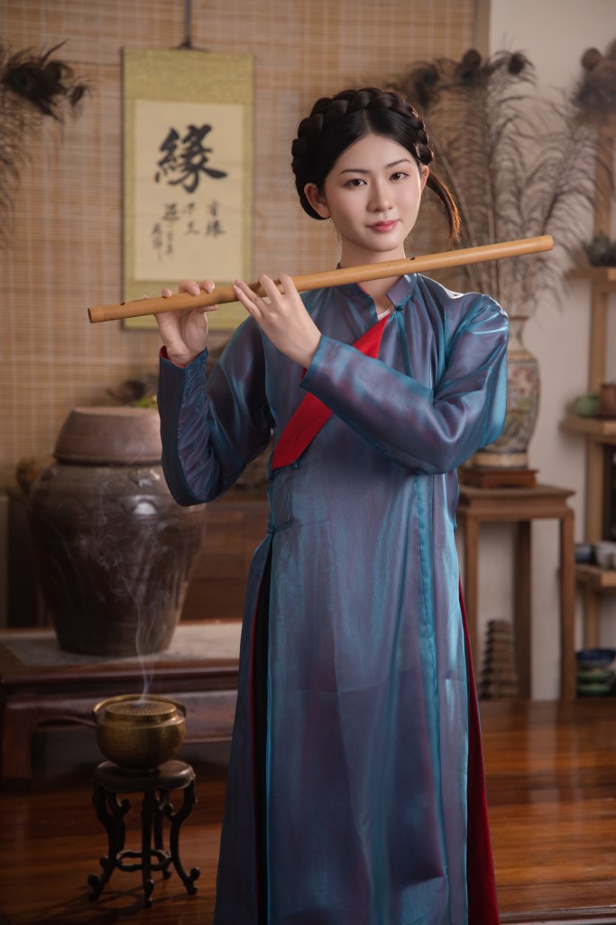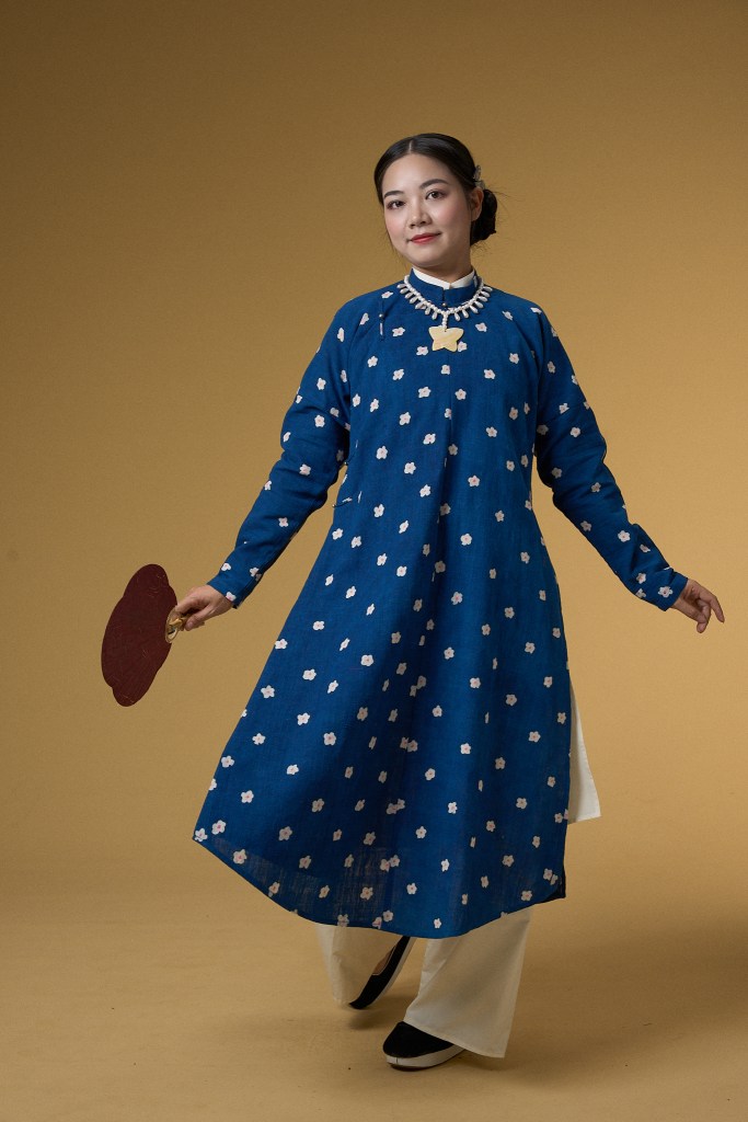 Áo có cổ đứng, cài khuy bên phải, tay ôm sát và có 5 thân (Thời xưa, công nghệ chưa phát triển, khổ vải dệt từ tơ tằm chỉ được 30 cm đến 50 cm, khi may thành tà áo phải nối với nhau, cho nên áo có tất cả là 4 vạt chính và một vạt phụ, gọi là áo 5 thân).