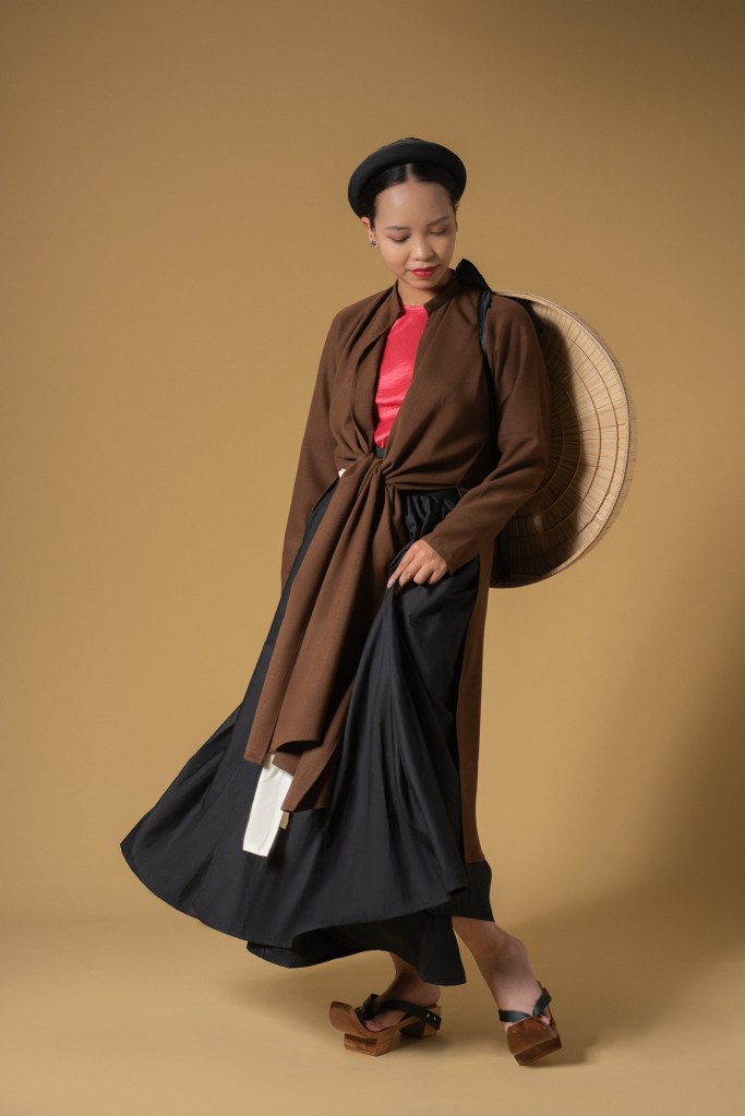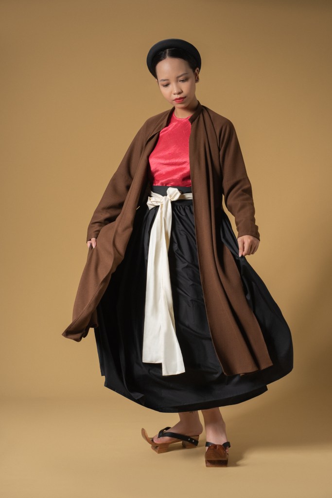Dạng áo khoác ngoài, cổ đứng, có 4 vạt nên gọi là “tứ thân”. Một dạng áo thông dụng cho nữ giới thời Nguyễn, đặc biệt là ở các làng quê Bắc Bộ.