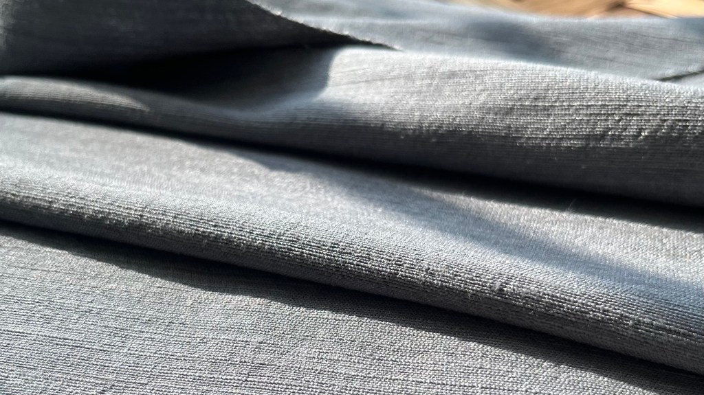 Sợi đũi là sợi tơ được kéo tay có sử dụng cả phần vỏ kén và lõi kén tằm, nên sợi thường to, xốp, và có nhiều đoạn sần do mối nối sợi. Sợi ngang của vải là sợi đũi được xe cùng một sợi tơ nõn chín, vậy nên bề mặt vải có độ bóng nhẹ. Vải được dệt khít nên dày dặn, nhưng cũng mềm mại vì có sợi dọc tơ chín.
