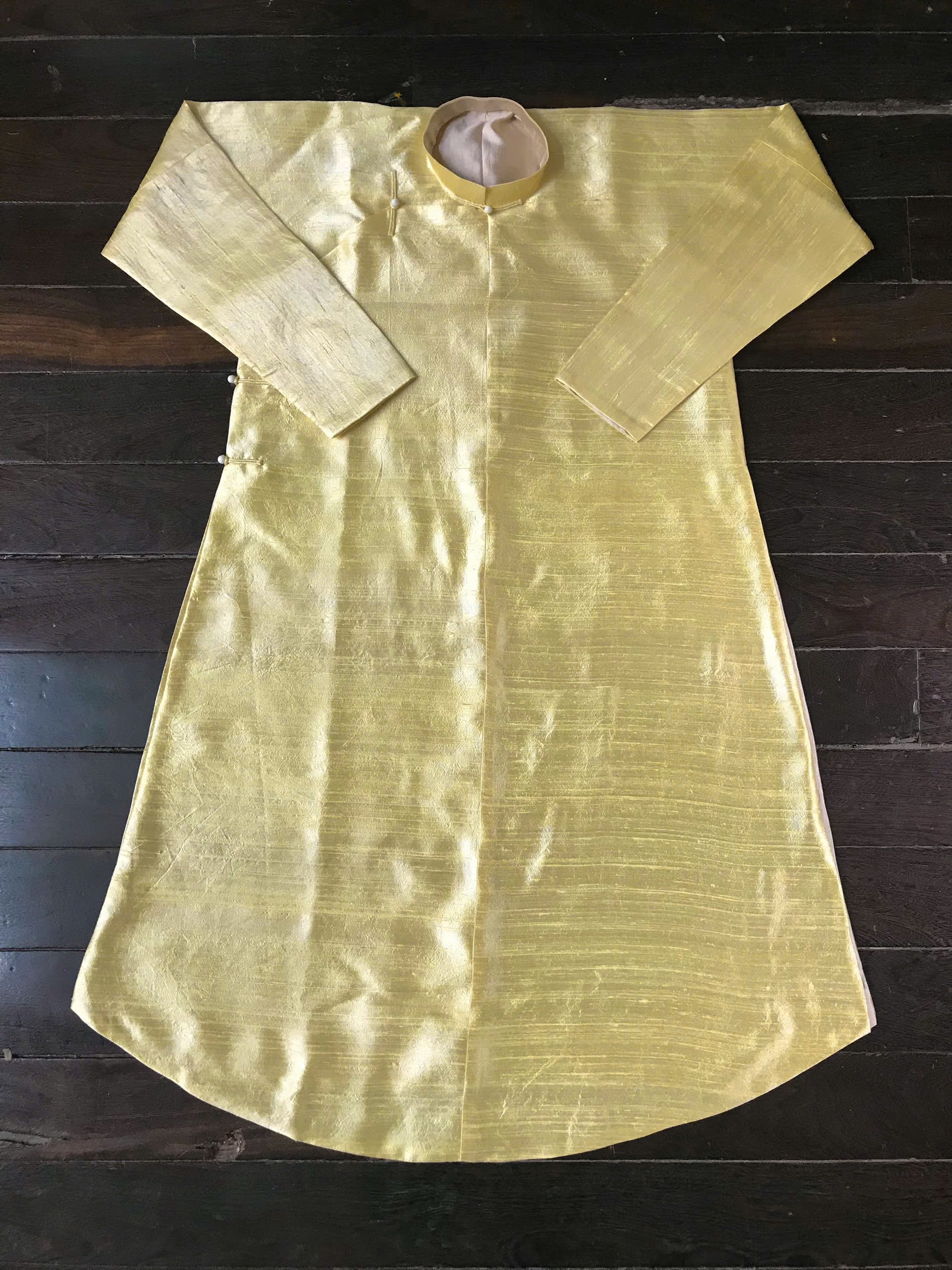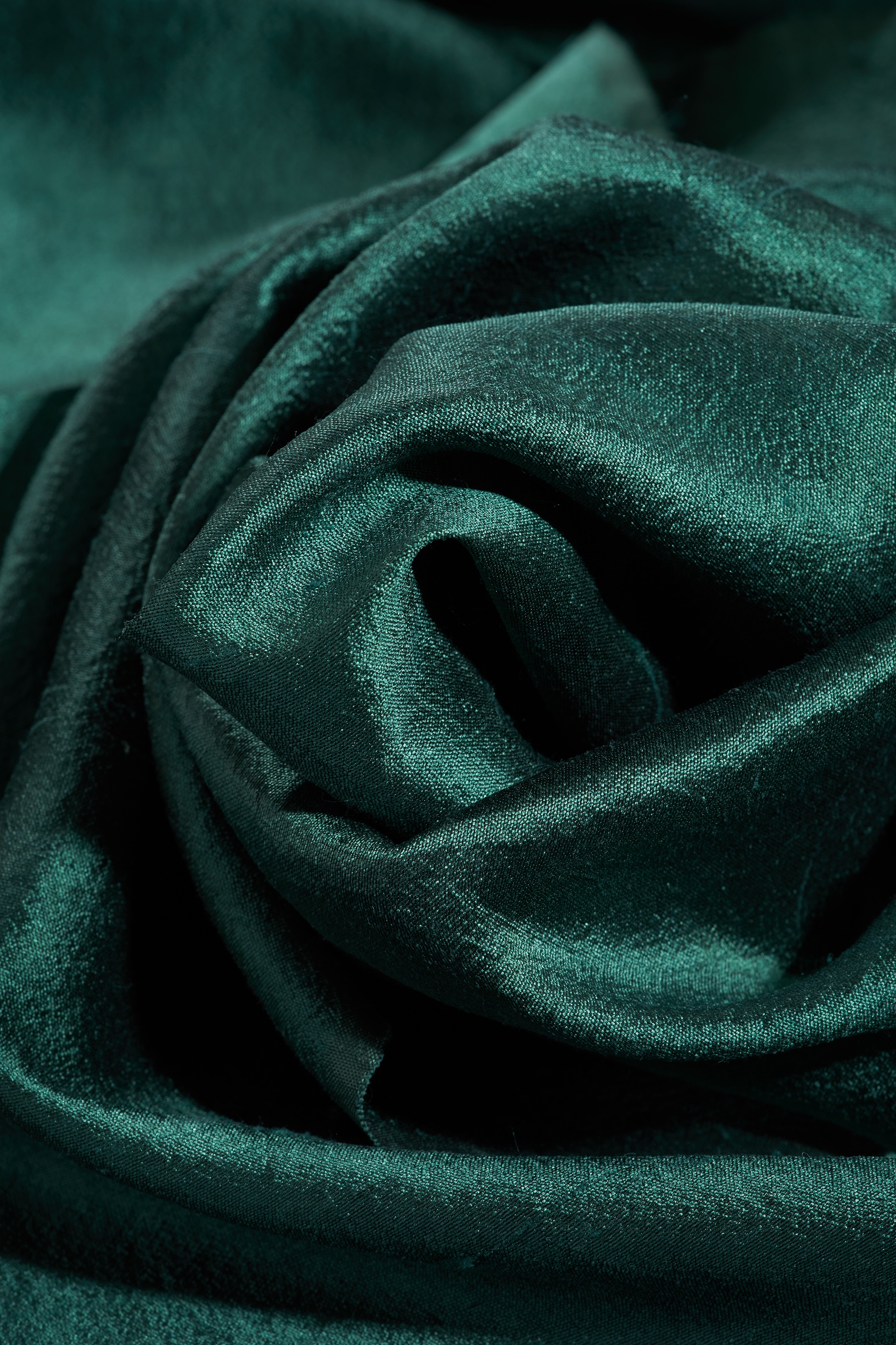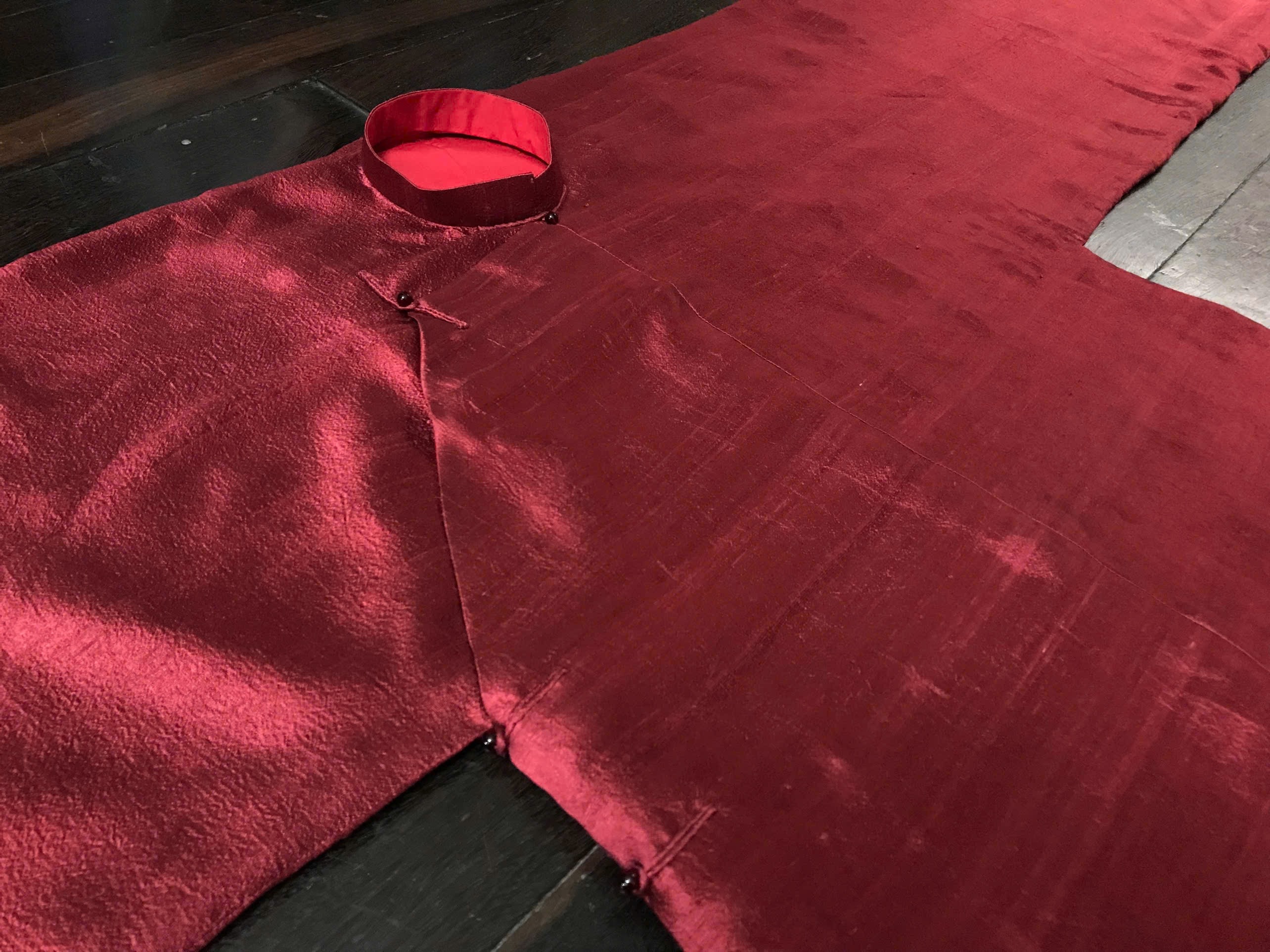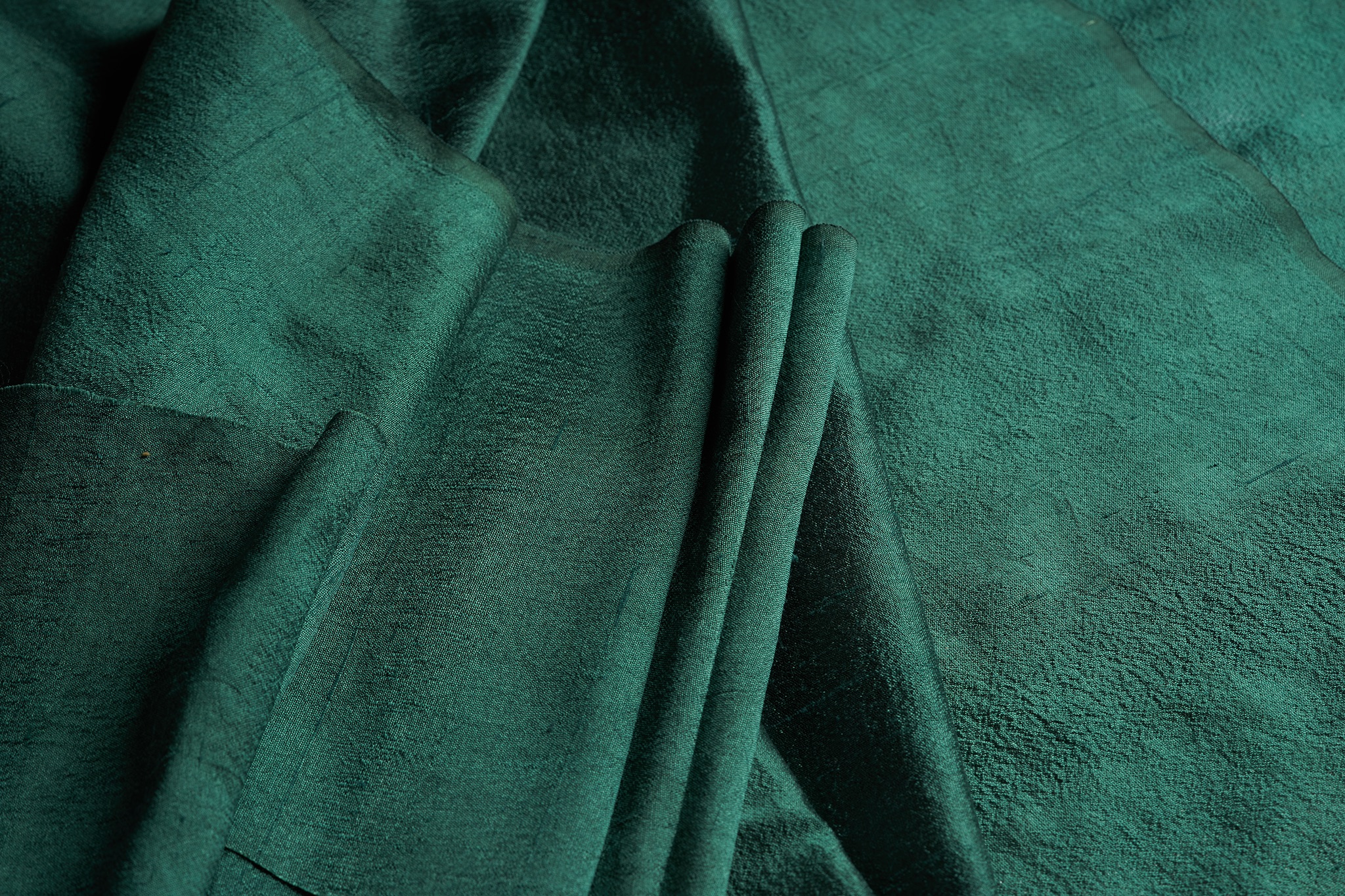 Loại vải này kết hợp sợi dọc sống, sợi ngang chín loại mộc nên cứng hơn loại tơ thủ công sống mặt mịn đôi chút. Sợi ngang của vải là sợi tơ kéo tay chín (loại sợi to, nhiều sần) nên bề mặt vải dày dặn, và có độ xước nhiều. Mặt vải có độ bóng cao.