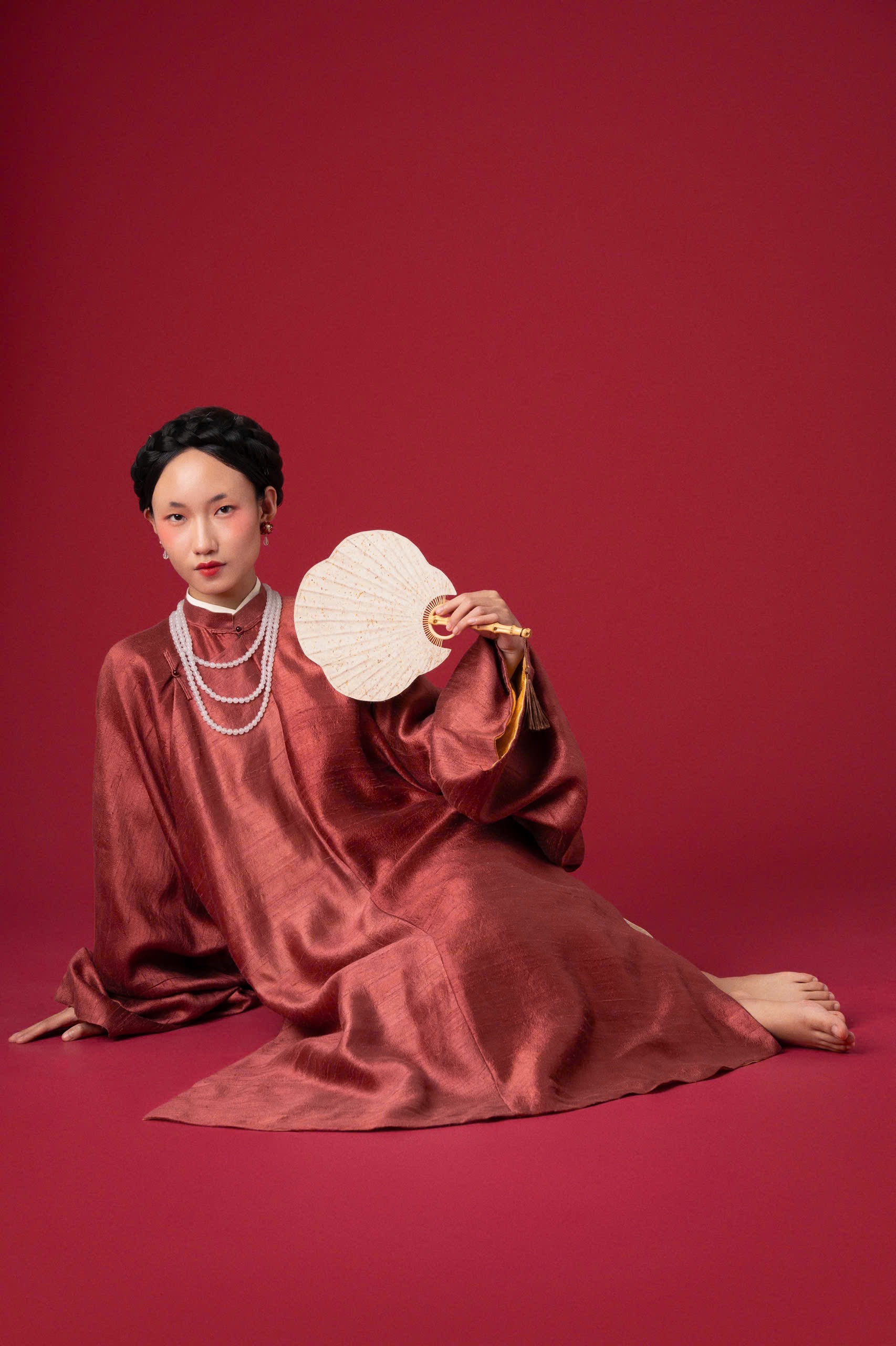 Sợi dọc tơ nõn sống, sợi ngang tơ thủ công (sợi tơ kéo tay) chín loại mộc