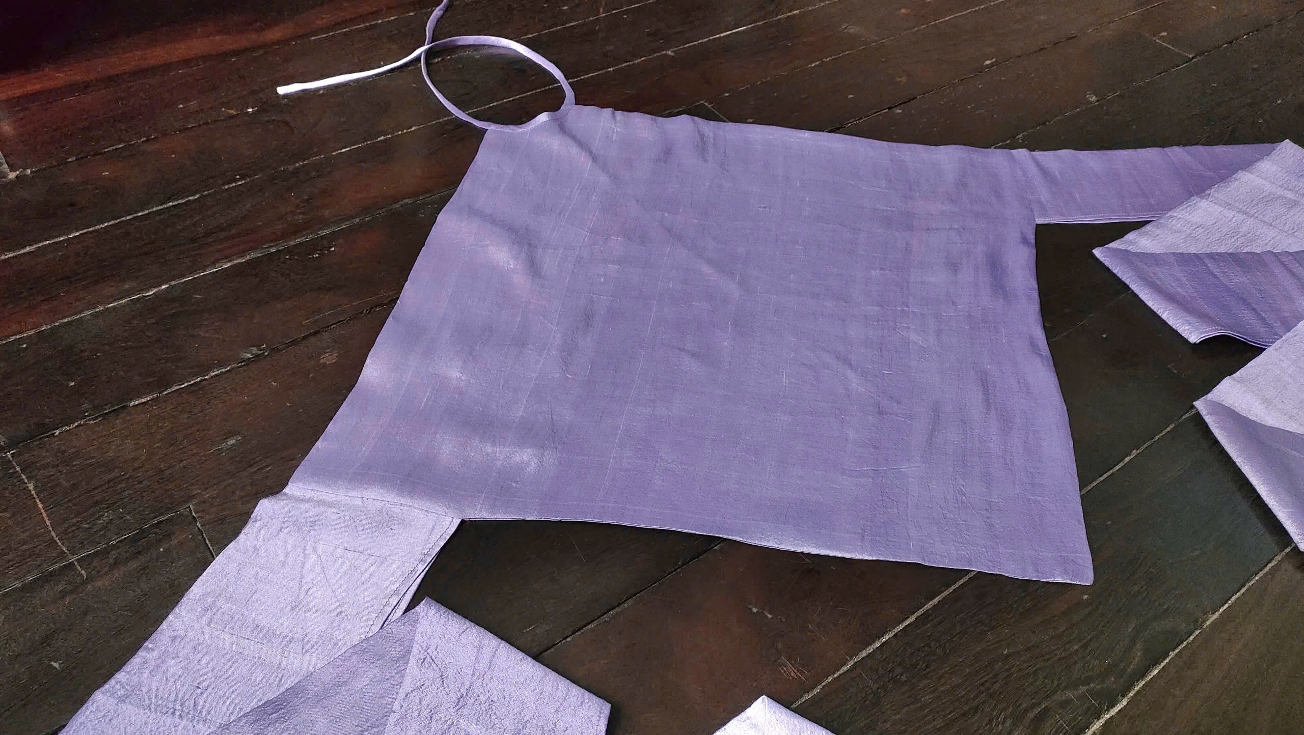 Sợi dọc tơ nõn chín, sợi ngang tơ thủ công (sợi tơ kéo tay) chín loại mịn, ít sần