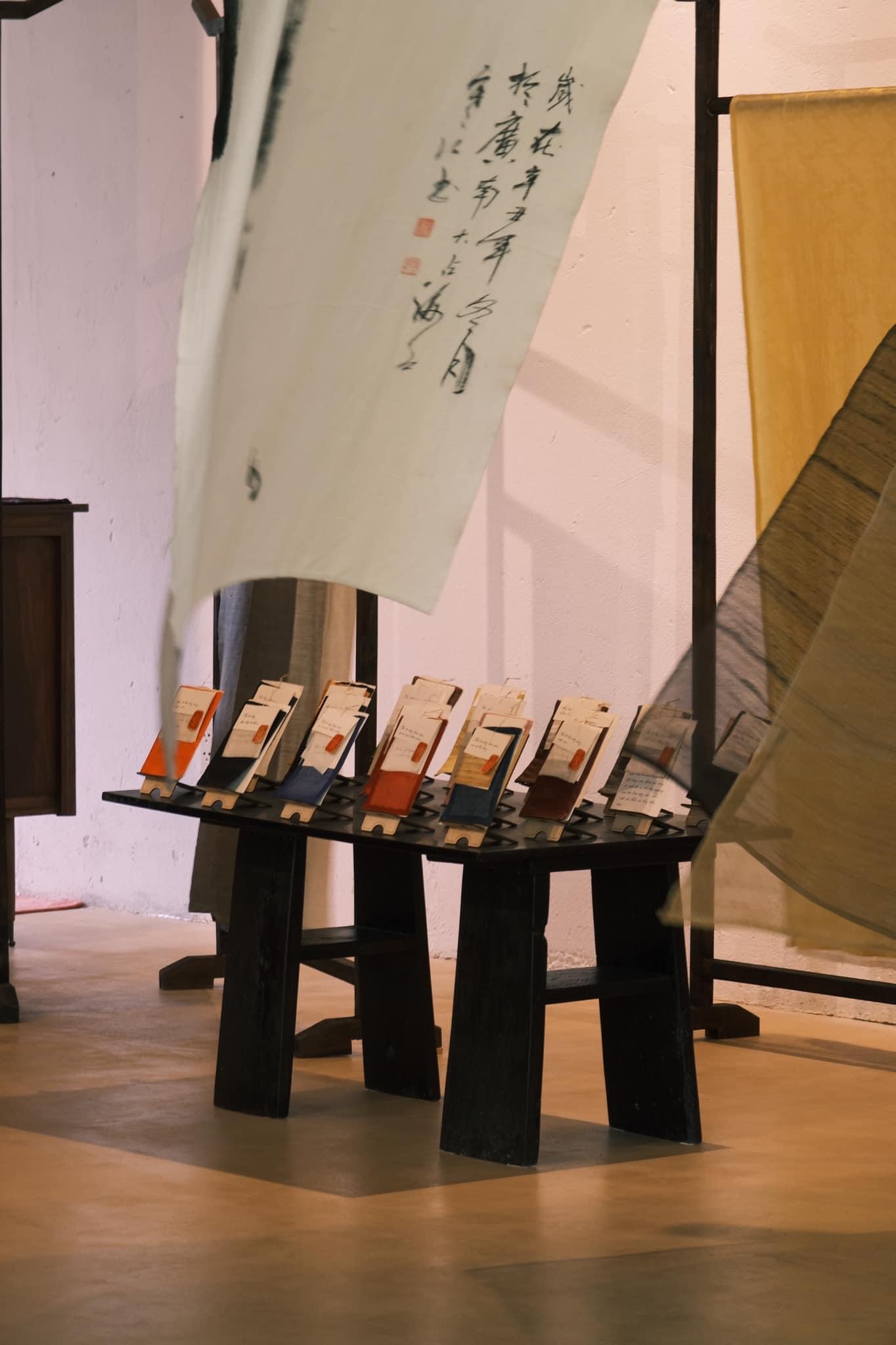 Trong sự kiện này, Đông Phong trưng bày các mẫu vải tơ tằm được sưu tầm và nghiên cứu để ứng dụng cho cổ phục Việt.