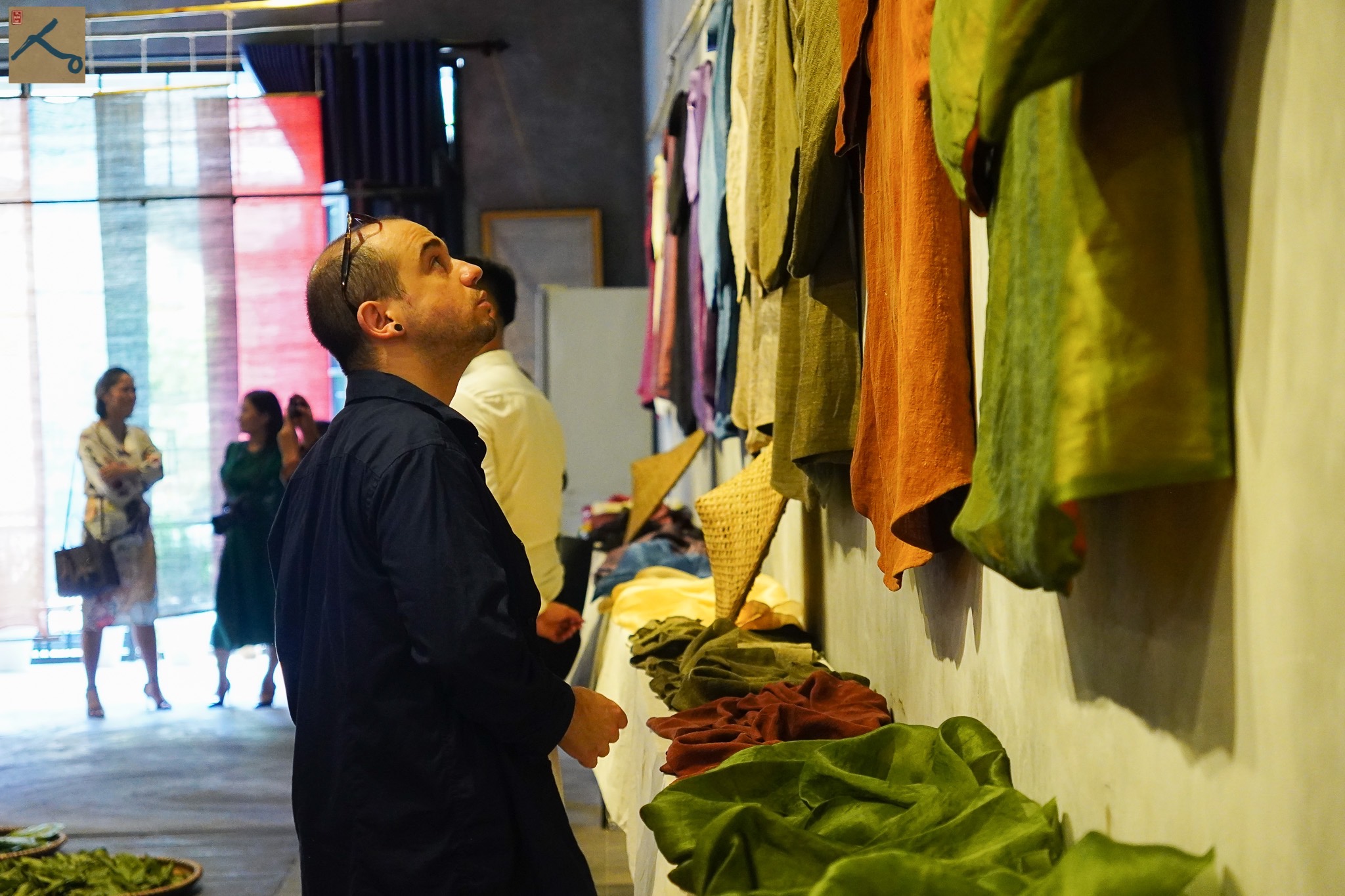 Triển lãm tại không gian Ba Ngàn Art, nơi khách tham quan cùng trải nghiệm nhuộm tự nhiên với sự hướng dẫn của Đông Phong