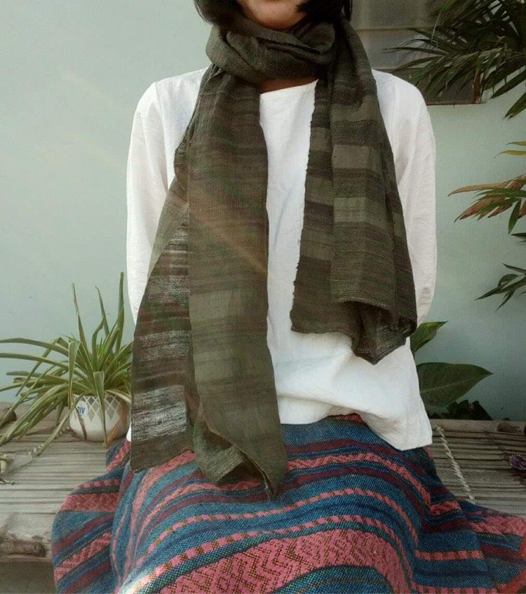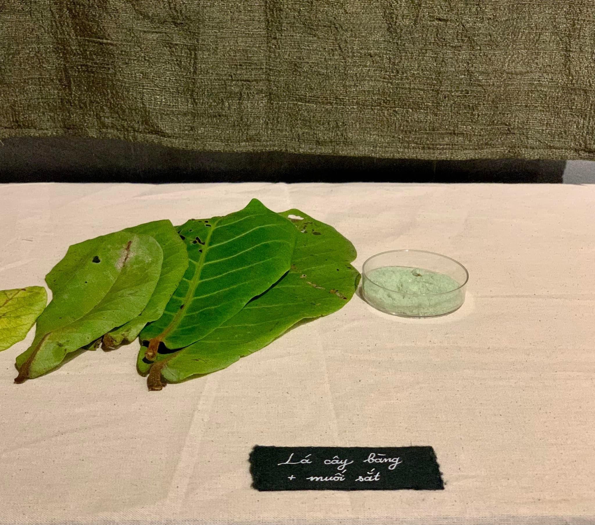 Vải nhuộm lá bàng chuyển sang màu rêu đậm khi kết hợp cùng muối sắt