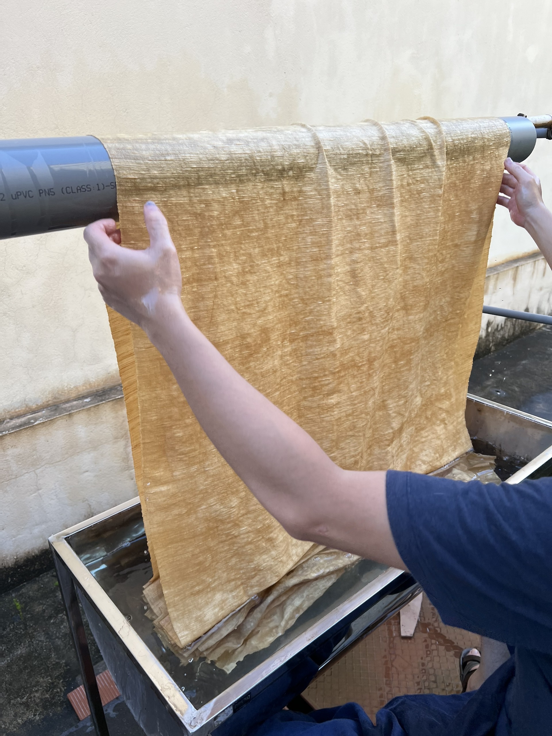 Nhuộm vỏ vải cho ra một màu be ấm dịu mắt.